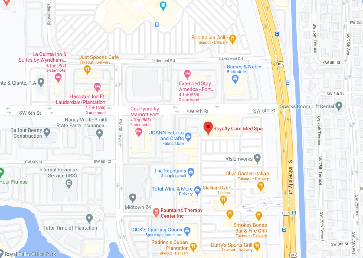 Here at Royalty Care Med Spa Plantation, FL, we take great pride in listening to our client's wellness goals and creating a customized treatment plan that works for them. We never want you to feel like we are just another med spa trying to sell services that don't benefit you. From IV Therapy to anti-aging treatments, we provide everything you need to look and feel your best!
